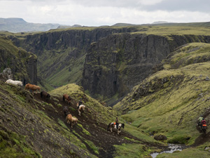 Nous explorons la région située entre le volcan Hekla et le glacier Tindafjallajökull. Nous chevauchons à travers une région réputée pour ses jolis chemins de randonnée et sa nature très spéciale : des sols sablonneux couverts d’herbe verte, des formations de laves issues des différentes éruptions du volcan Hekla au fil des siècles... Notre sentier suit la route que le Viking Gunnar d’Hlioarendi, ...