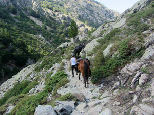 Jour 4 : journée libre. Soit "farniente" au centre équestre, soit on vous dépose à Corte le matin. Visite libre de la vieille ville, musée, possibilité de rando pédestre et baignade en rivière ou de prendre le petit train pour visiter Ajaccio. Retour vers 19h au centre équestre.